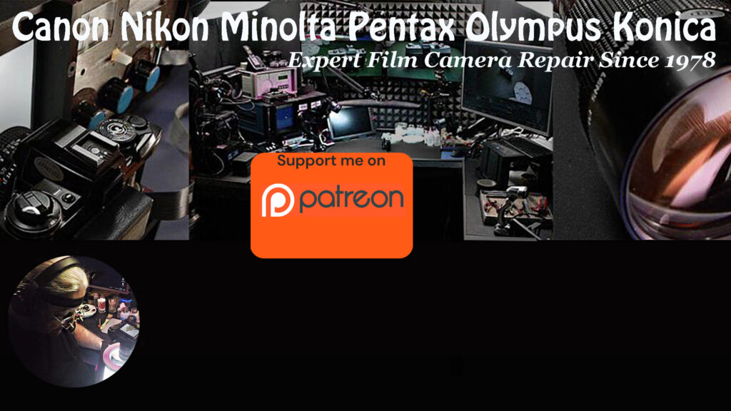 Pricing is based on the time required, not quick “while-you-wait” fixes. A typical full service takes about three days to disassemble the camera, clean and lubricate mechanisms, reassemble, and adjust both shutter speeds and meter operation. Many of these film cameras are now 40–45 years old, so a proper restoration often requires many hours of careful, detailed work.